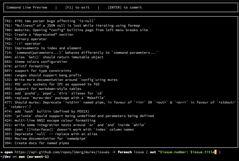 The Interactive Shell guide walks you through using Murex as a command line as opposed to a scripting language.